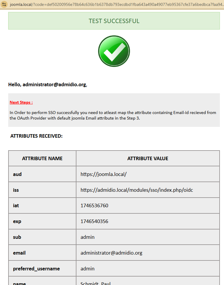 Admidio and Joomla should now be set up to use Admidio for logging in to Joomla. The normal Joomla login form will still be shown and does NOT redirect to Admidio for login. Rather, it can be used for login with local Joomla accounts, which still can exist in addition to OpenID (or SAML) SSO.