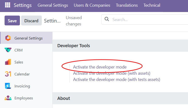 It is now a good idea to keep two browser windows open with Admidio and Odoo's configuration so one can easily select and copy the settings. Admidio even provides little “copy” buttons/icons to copy the various settings to the clipboard for easy pasting into the Odoo configuration.