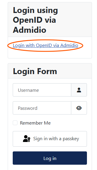 If you log out of Joomla and try to log in again, you will be shown the Admidio login screen and then redirected back to Joomla.