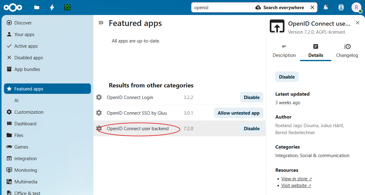 - At the Relying Party (RP) - Nextcloud in our case - install the extension to support OpenID login.