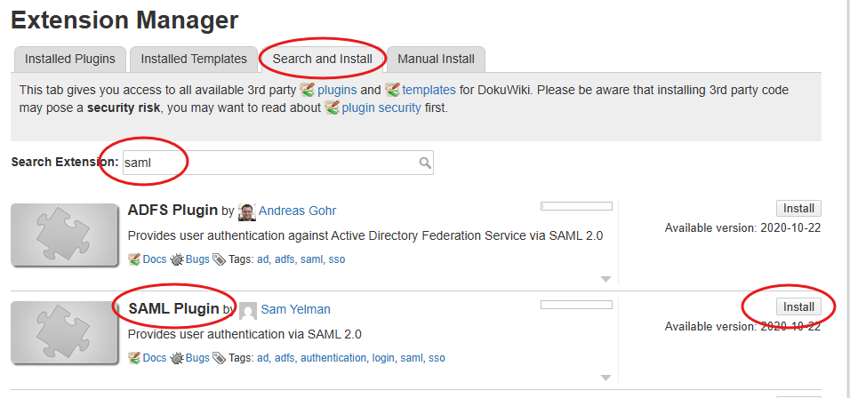 - At the Service Provider (SP) - DokuWiki in our case - install the extension to support SAML login with an external IdP.