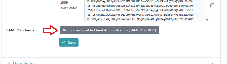 Now, return to Admidio's SSO preferences page, go to the “Single-Sign-On Client Administration” (the button right above the “Save” button), and create a new client.