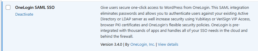 - At the Service Provider (SP) - Wordpress in our case - install the extension to support SAML login.